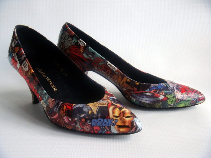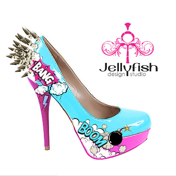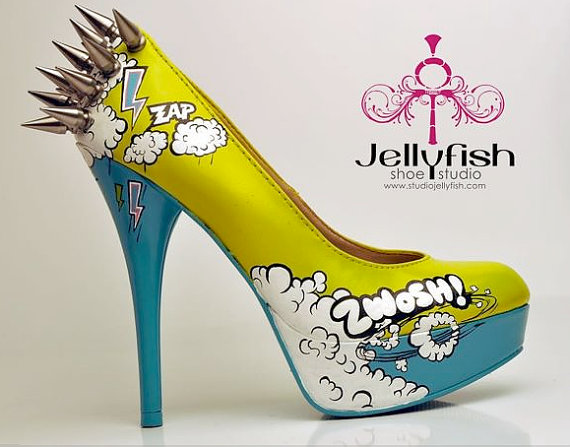 Ahora, si no eres muy buena para hacer cosas con tus manos siempre está la opción de comprar. Date una vuelta por la web de jellyfish, ahí encontraras una cantidad y variedad de tacones, incluso botas increíble, con hermosos diseños inspirados en el mundo comics. Eso si, el valor promedio de cada uno supera los us$600. Yo por lo menos ya me decidí! me ahorrare esos dólares y me confeccionare unos este fin de semana para el lunes caminar con alegría por las calles con tacones altos.