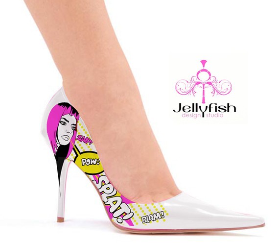 Ahora, si no eres muy buena para hacer cosas con tus manos siempre está la opción de comprar. Date una vuelta por la web de jellyfish, ahí encontraras una cantidad y variedad de tacones, incluso botas increíble, con hermosos diseños inspirados en el mundo comics. Eso si, el valor promedio de cada uno supera los us$600. Yo por lo menos ya me decidí! me ahorrare esos dólares y me confeccionare unos este fin de semana para el lunes caminar con alegría por las calles con tacones altos.