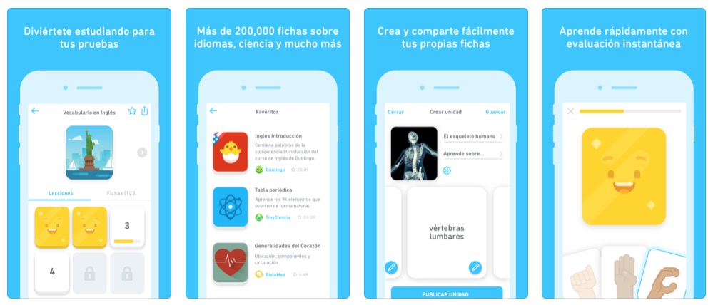 Esta es una nueva forma de prepararse y memorizar vocabulario. Tinycards es una app de fichas de estudio creadas por un equipo de especialistas en lenguajes. Es un sistema de repaso espaciado que te ayudarán a recordar información para pruebas importantes. Puedes escoger entre miles de temas o crear tus propias fichas. Podrás descargarlo desde tu iPhone o iPad de manera gratuita.