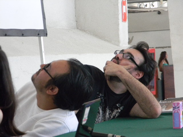 Entre los invitados pudimos ver a Alfredo Rodriguéz el cual traía bajo el brazo el reciente tercer y último tomo de “Siento y Miento”, Jorge Baradit quien contó parte de sus creaciones (Synco, Lluscuma, entre otros) y uno que otro avance de sus nuevos trabajos. Otro que estuvo presente fue Miguel Ferrada con su nuevo relato de la saga Mortis:”In Absentia Mortis”. Otros autores presentes con los que compartimos fueron: Cristian “Tec” Diaz y la ilustradora Elizabeth Hunt “Koneja”.