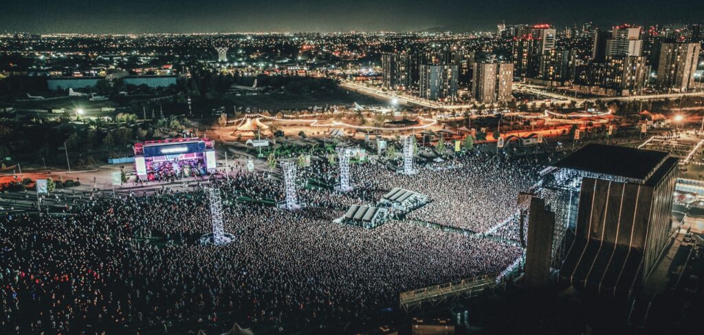 El gran cierre en el Cenco Malls Stage será de Sabrina Carpenter entre 22:15 y 23:35. Set largo, horario estelar, producción grande. Claramente uno de los momentos más masivos del fin de semana.