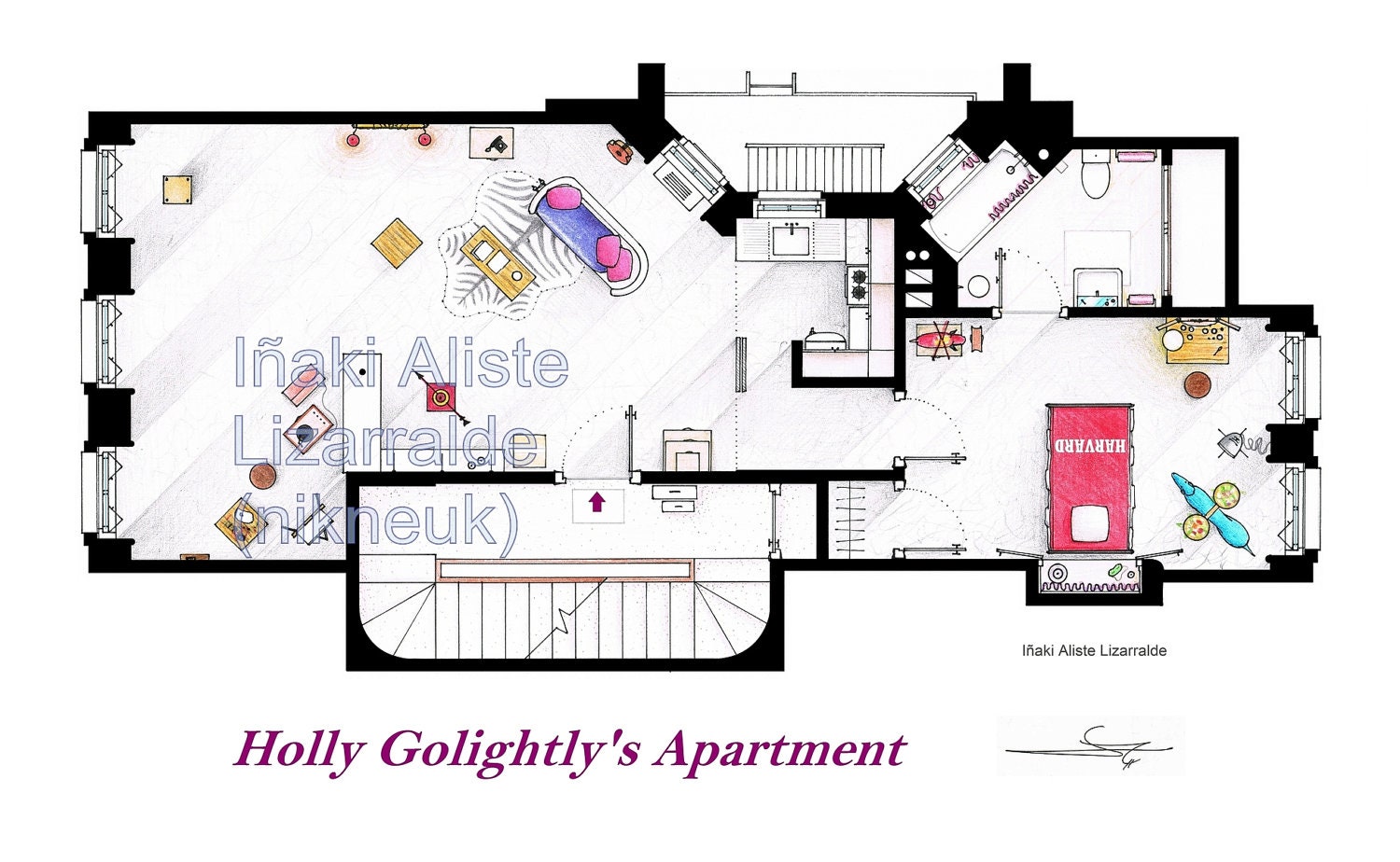 Algo minucioso y útil para los fanáticos que quieren replicar el lugar de sus personajes favoritos, para vivir en un espacio igual o para colgar el plano en la pared y «mentoriar» con sus invitados sobre la serie a qué pertenece.