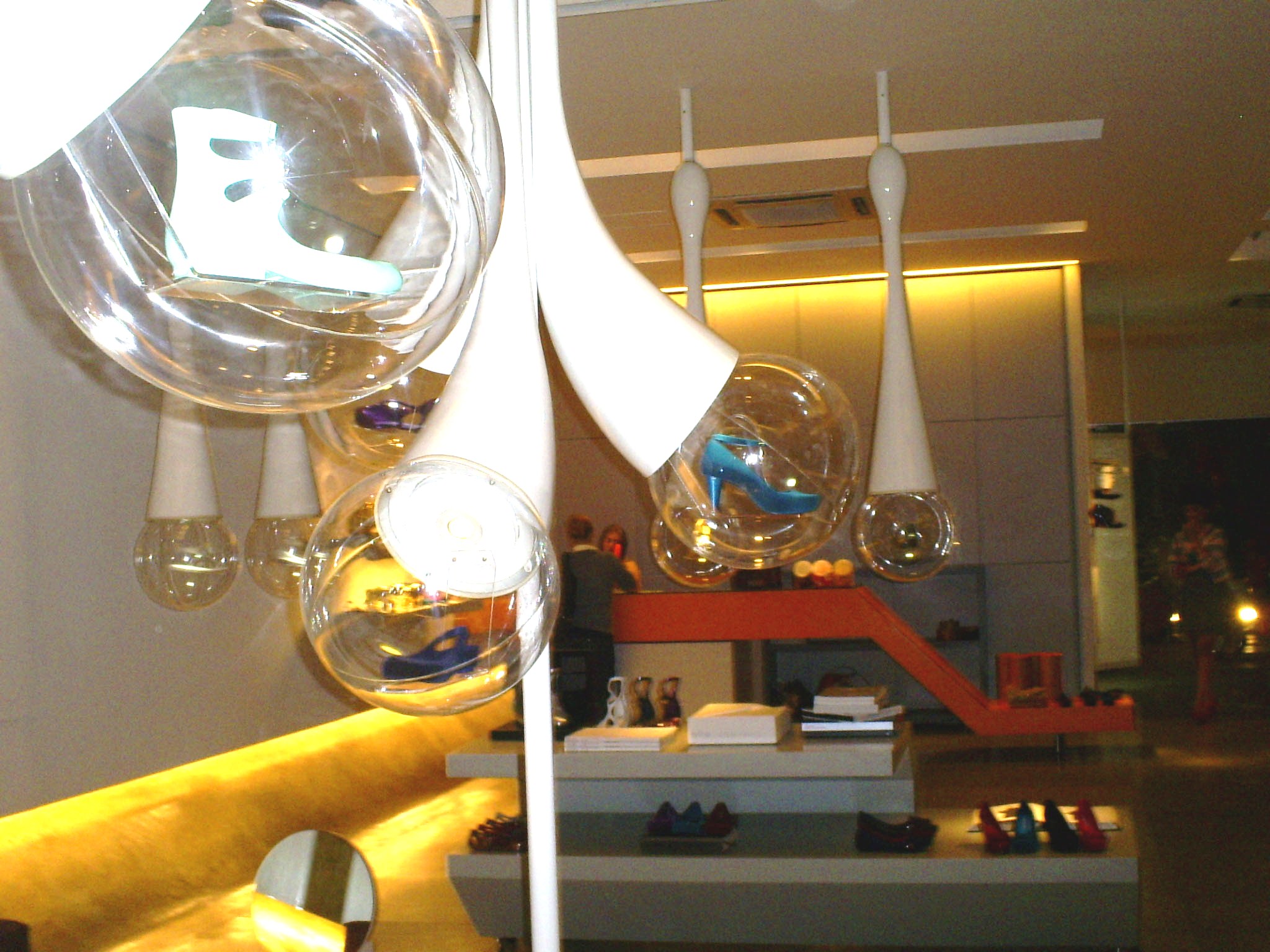 En Sao Paulo se encuentra una de las más grandes tiendas Melissa de Brasil, si aquellos zapatos de plástico que huelen a chicle. En la entrada de la tienda tienen animales gigantescos, la primera vez que fui era un elefante enorme, bajo el cual tenías que pasar para entrar a la tienda, y la última vez que fue era una jirafa. Una alfombra roja te da la bienvenida y dentro hay esferas transparentes que brotan de los lugares más inesperados, y que en su interior muestran algunos de los últimos modelos de la colección mas reciente.