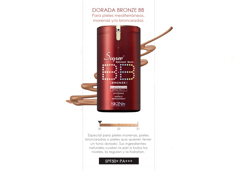 Todas las versiones de las BB Creams de Skin79 vienen en un solo tono, este color por lo general es claro pero una vez aplicado y entrando en contacto con el calor de la pie, se adapta al tono de piel de cada persona, pero por experiencia les digo que no se adaptan al 100%, siempre quedan un poquiiiito más clara por sus propiedades despigmentantes (y porque las coreanas quieren verse blancas siempre), por eso lanzaron la version Bronze BB, con un tono mas bronceado, que no es ni taaan bronceado como muestra la gráfica de esta, pero no sé como lo hace esta tecnología que igual se ve perfecta en cada piel.