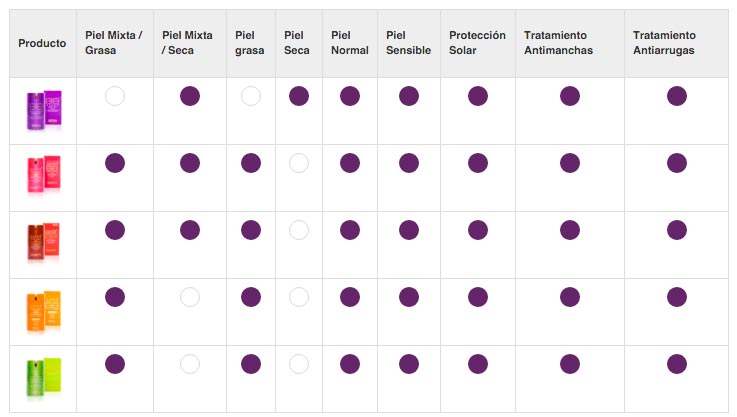 Todas poseen SPF entre 25 y 50, además de estar diseñadas para mujeres de diferentes edades, con distinto nivel de imperfecciones y de humectación, asegurando una excelente cobertura y protección. Vienen en presentación de 40 gramos y en envases ergonómicos que cuidan en producto de contaminaciones externas.