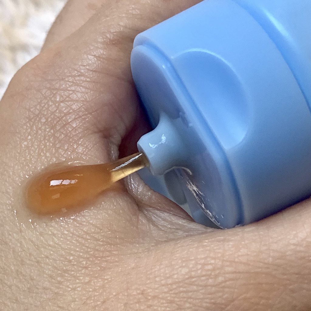 El gel de limpieza es extraño, super elástico y viscoso, tiene color caramelo, no forma espuma, pero uno se lo aplica en el rostro, se enjuaga y siente la piel limpia pero no tirante. Es loco, pero funciona sin ser un limpiador agresivo.