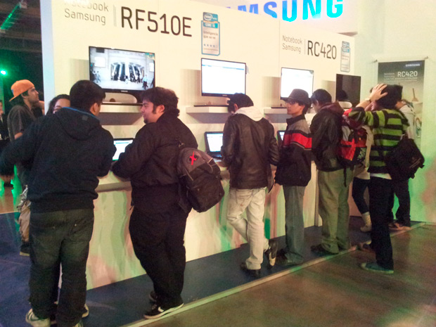 Pero en honor a la verdad, la expectación se daba en los coliseos y zonas de freeplay, en donde los asistentes podían disfrutar jugando en consolas de Microsoft y notebooks Samsung. Variados Stands de esta última marca, le permitían a los gamers probar el nuevo laptop RC420 y a la vez obtener diversos recuerdos del torneo. Mención especial para Nvidia que mostró un poco del espectacular Geforce 3D Vision Ready, que cambia la forma de jugar.